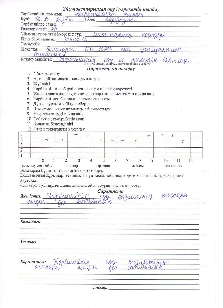 Ашық ұйымдастырылған оқу қызметі 2021-2022 оқу жылы