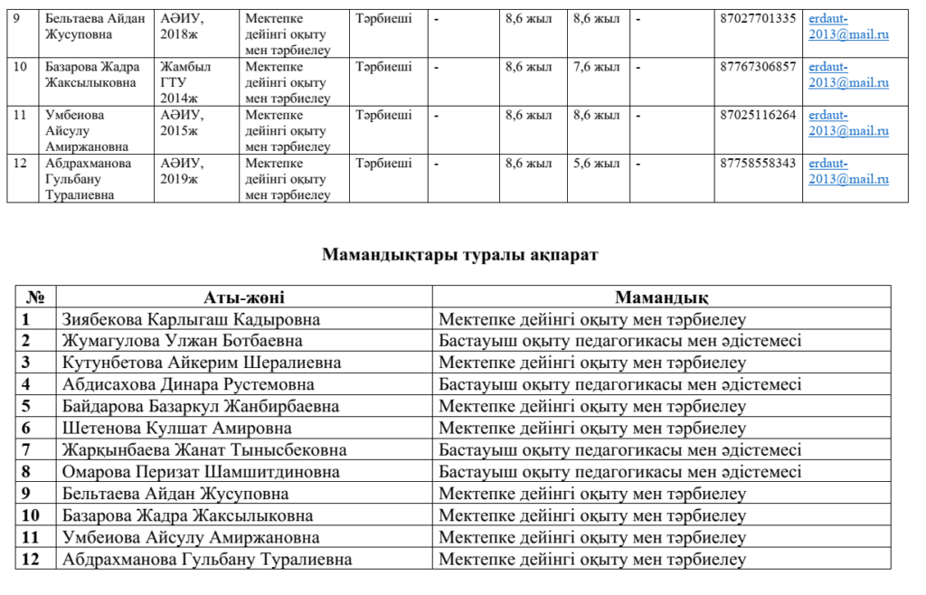 Аттестаттауға балабақша құжаттары